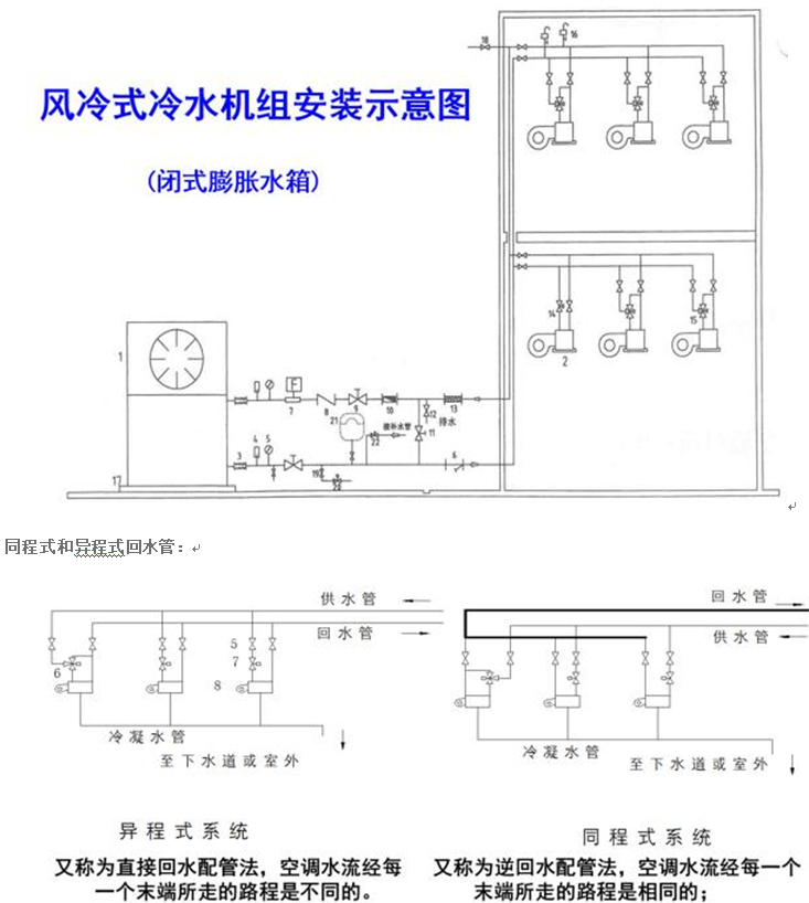 同程系統(tǒng)可以保證空調(diào)水在兩端均勻流動,防止遠(yuǎn)端水流不足影響制冷和制熱效果。。