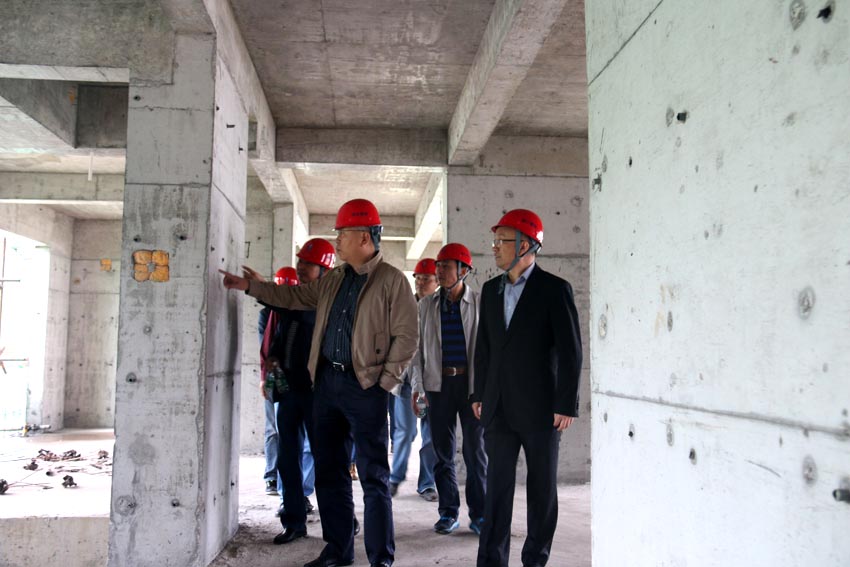 楊曉晉局長一行到達項目駐地后,參觀了項目施工現場,并徒步登上項目最高施工層,詳細了解了項目施工工序、用材以及勞務人員配置情況。參觀結束后,楊曉晉局長在項目部會議室主持召開了調研座談會。會議首先聽取了二一四隊謝海英隊長就項目方位、招標程序、工程進展、職工購房、項目營銷等方面的工作匯報。隨后,湘江公司總經理張賢軍分別從項目概況、施工進度、安全文明施工、質量管理、成本管控等五個方面就項目施工生產進行了全面匯報,與會人員就相關具體細節作了補充匯報。