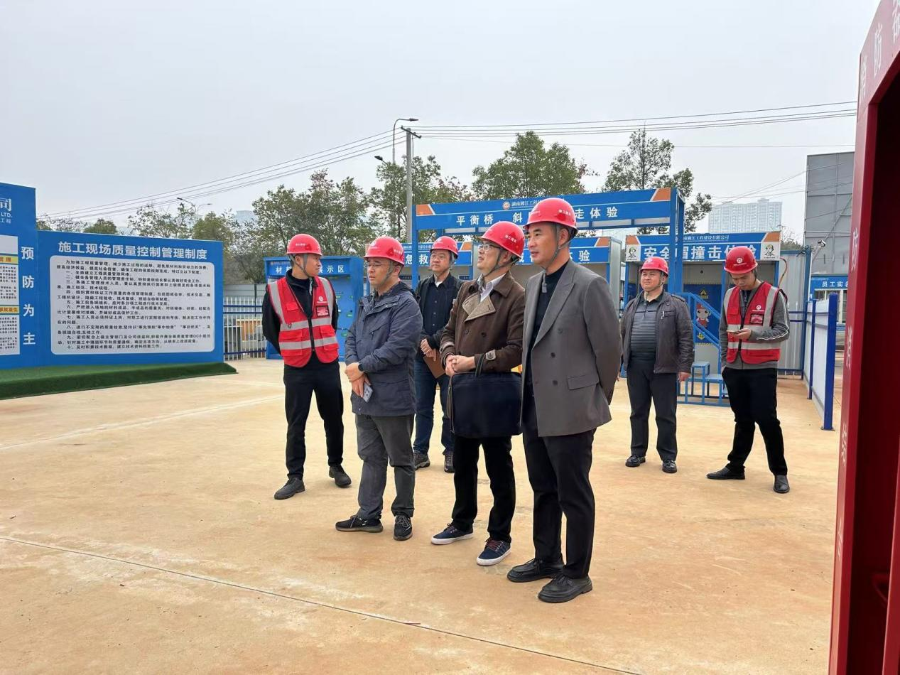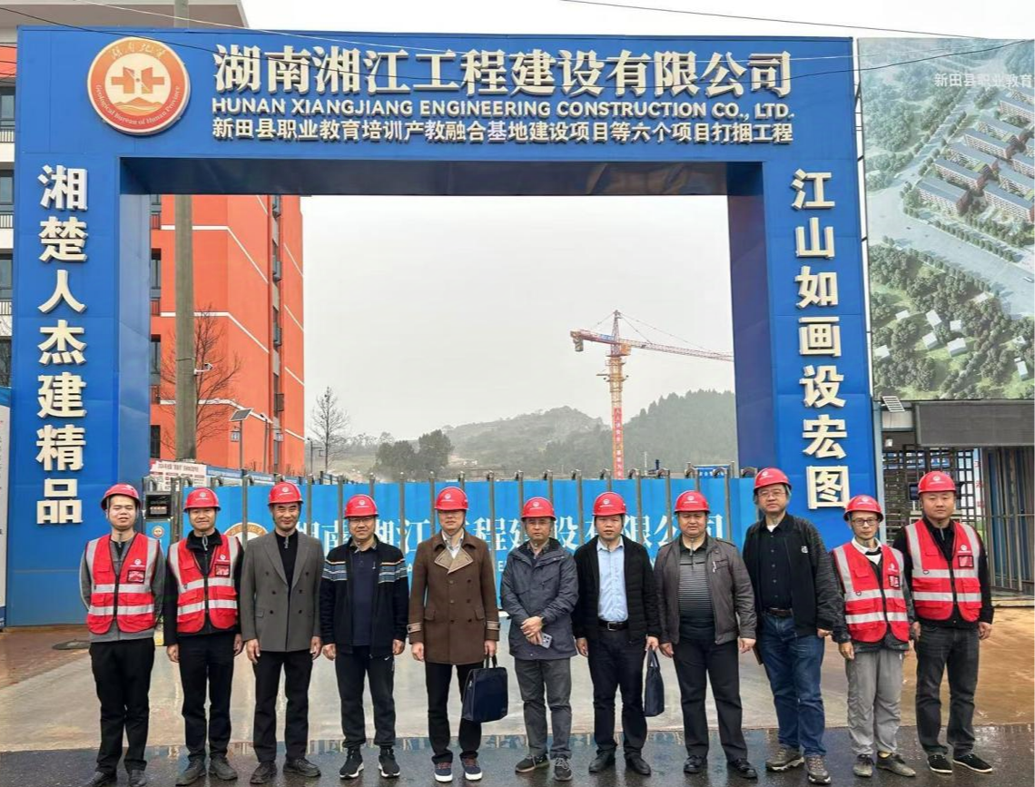 2024年11月25日,湖南省地質(zhì)院質(zhì)量大檢查企業(yè)檢查組組長崔小平帶隊(duì)到湘江公司新田縣職業(yè)教育培訓(xùn)產(chǎn)教融合基地建設(shè)項(xiàng)目檢查指導(dǎo)項(xiàng)目建設(shè)工作,公司副總經(jīng)理王建平、項(xiàng)目管理部經(jīng)理劉玨及項(xiàng)目全體管理人員陪同迎檢。