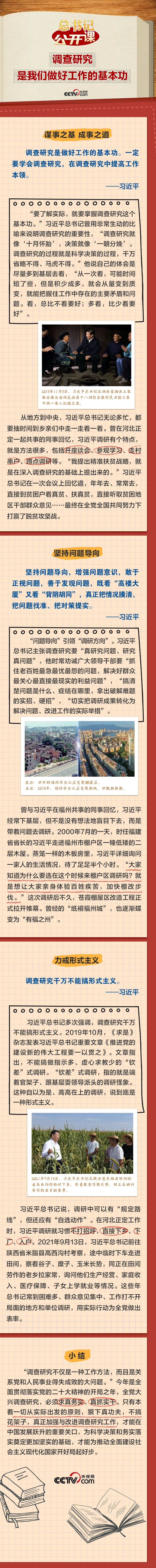 “調查研究是謀事之基、成事之道,沒有調查就沒有發言權,沒有調查就沒有決策權。調查研究是我們做好工作的基本功。”習近平總書記非常重視調查研究,并一以貫之身體力行、率先垂范,推動全黨大興調查研究之風。本期《總書記“公開課”》聚焦總書記關于調查研究的所思所言所行,讓我們一起學習領會。