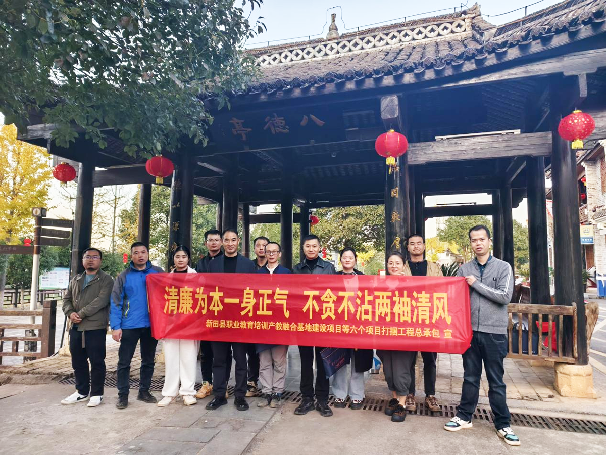 2024年11月27日,新田縣產(chǎn)教融合建設(shè)基地項目部赴新田縣龍家大院開展了“清廉為本一身正氣 不貪不沾兩袖清風”的廉潔教育活動。